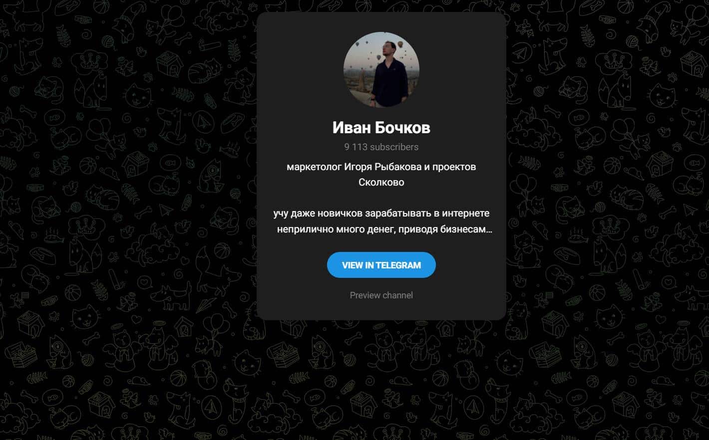 Иван Бочков – еще один гуру с нулевой репутацией продает воздух в Teлеграм.
